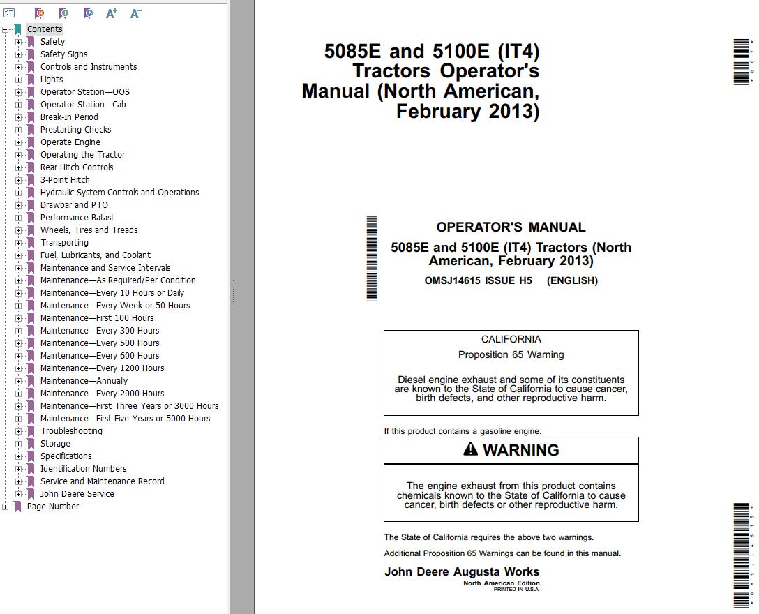 John Deere 5085E 5100E (IT4) Operator's Manual