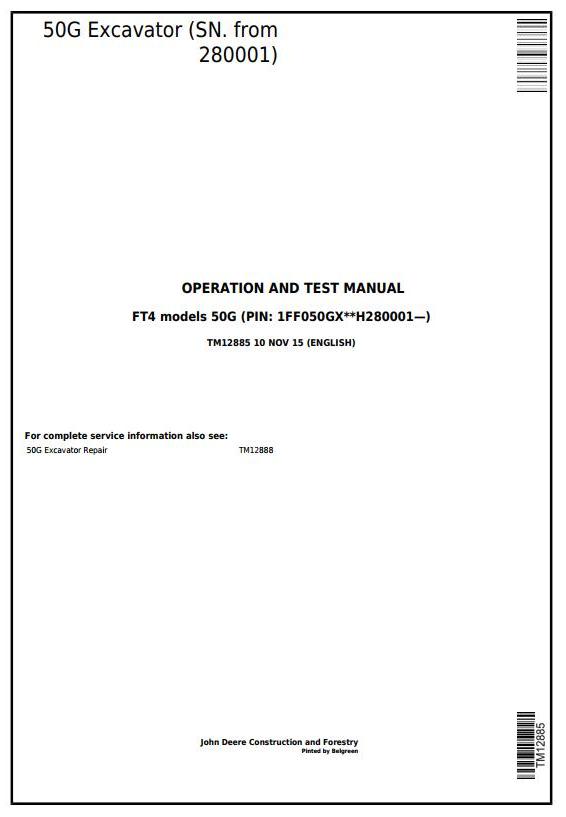 Machine Model: 50G (PIN: 1FF050GX**H280001—) (SN.280001-)