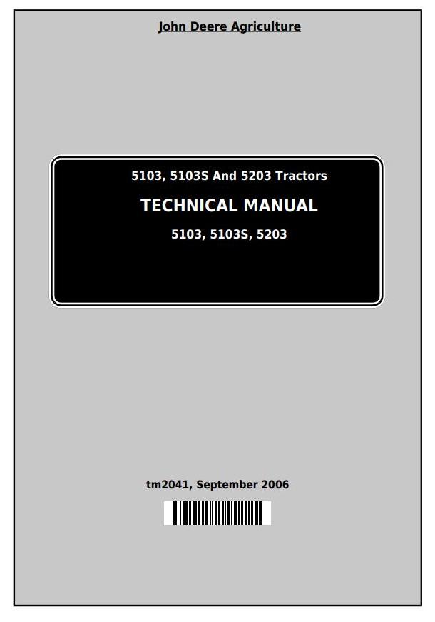 John Deere 5103 5103S 5203 Tractor Technical Manual TM2041