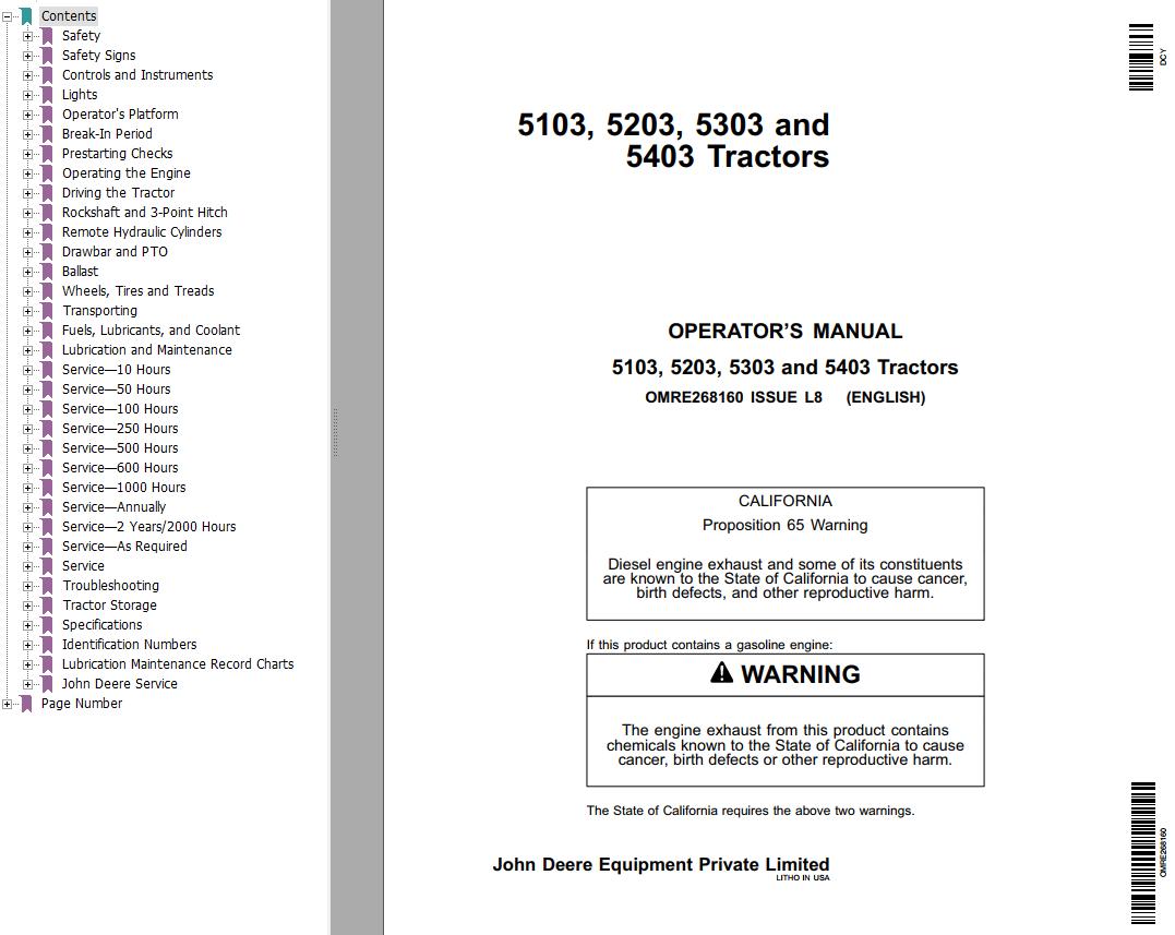 John Deere 5103 5203 5303 5403 Operator's Manual OMRE268160