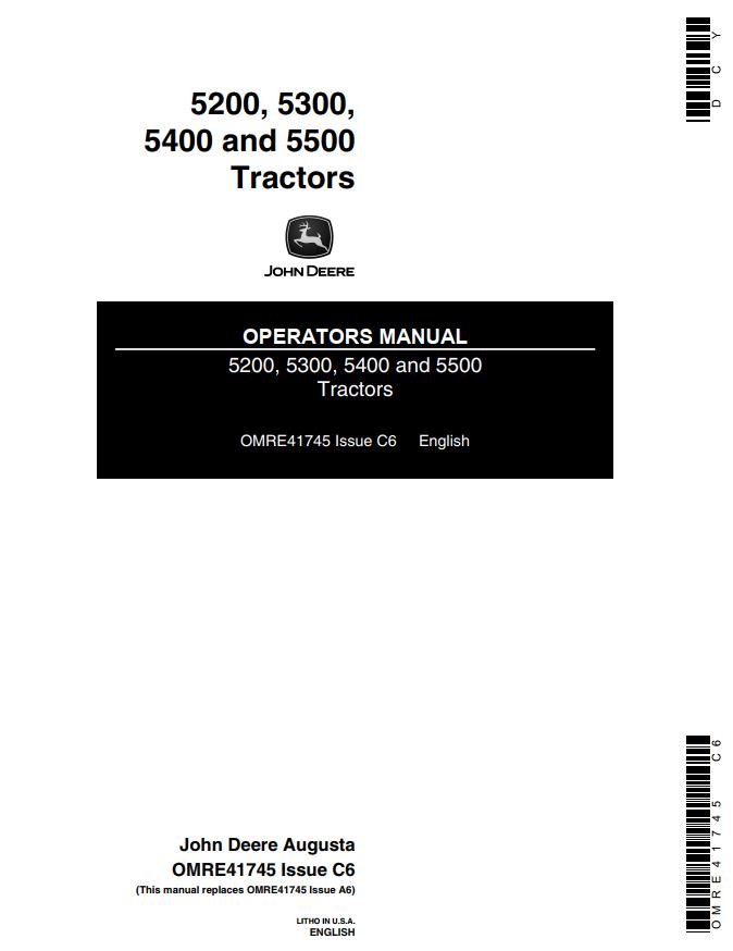 John Deere 5200 5300 5400 5500 Operators Manual OMRE41745