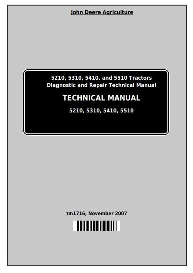 John Deere 5210 5310 5410 5510 Tractor Diagnostic Repair Technical Manual TM1716