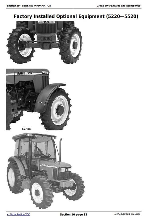 John Deere 5220 5320 5420 5520 Tractor Repair Technical Manual TM2048