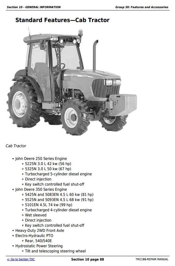 John Deere 5325N 5425N 5525N USA Tractor Repair Technical Manual TM2188