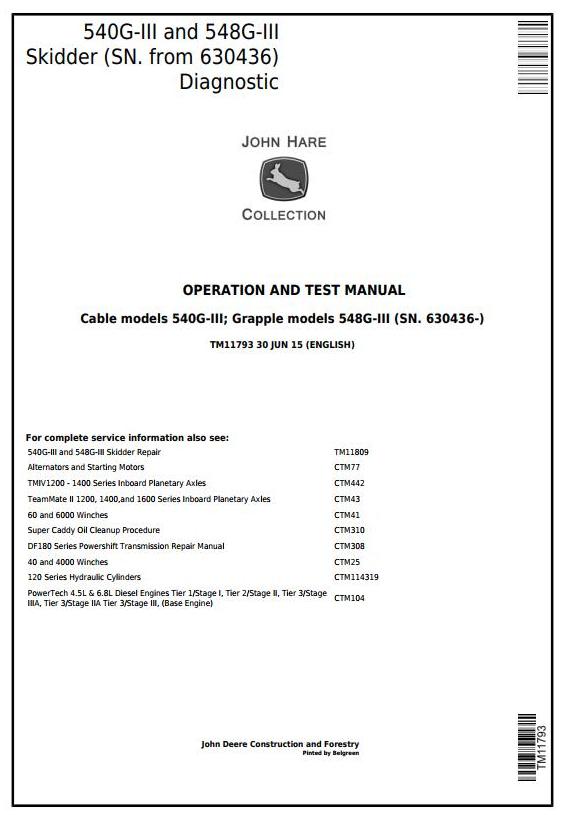 John Deere 540G-III 548G-III Skidder Diagnostic Operation Test Manual TM11793
