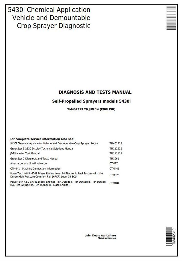 John Deere 5430i Self-Propelled Sprayer Diagnostic Test Manual TM402319