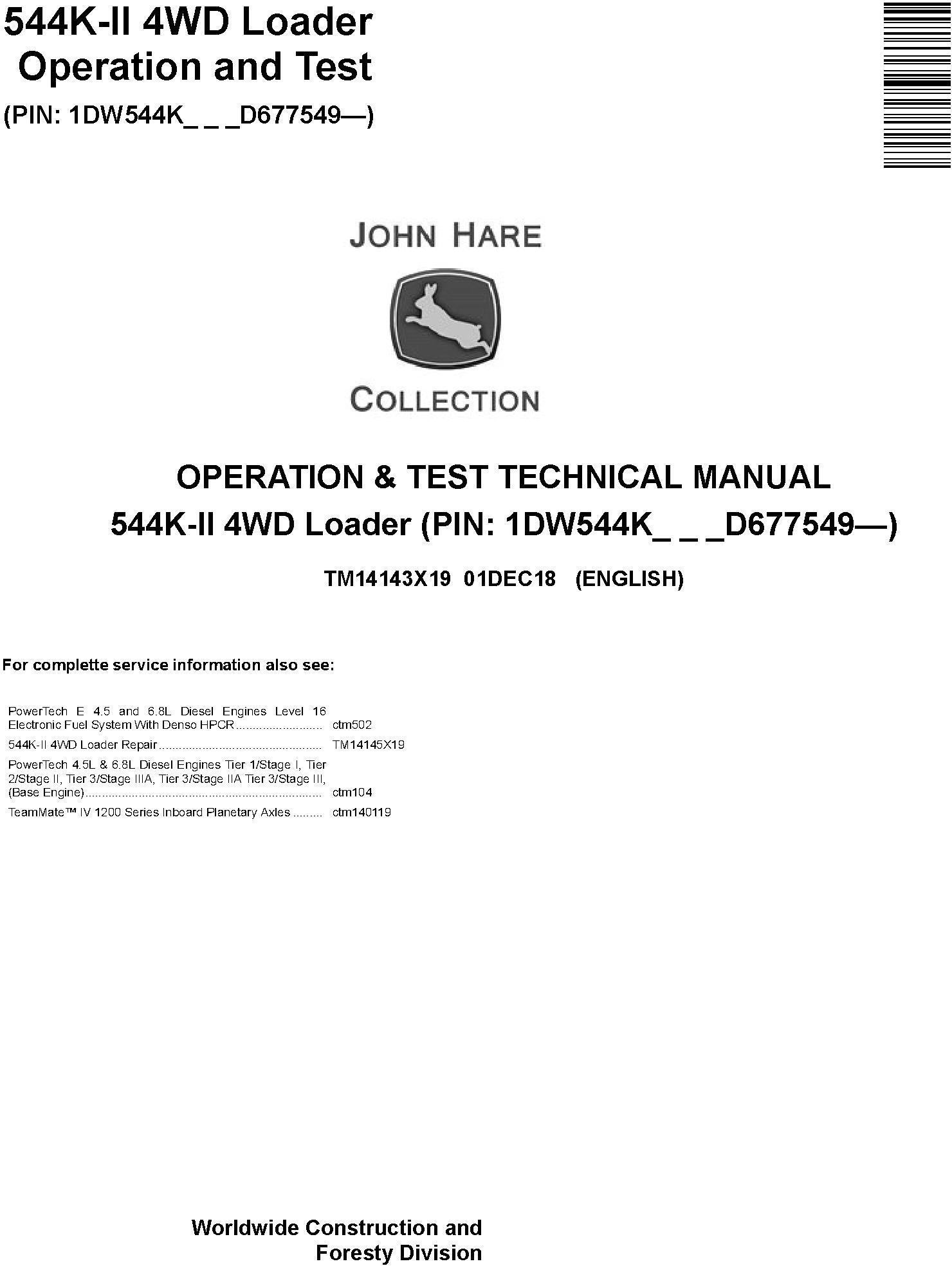 John Deere 544K-II Loader Operation Test Technical Manual TM14143X19