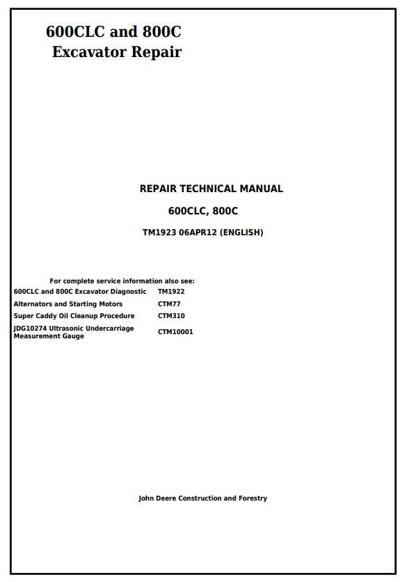 John Deere 600CLC 800C Repair Technical Manual TM1923