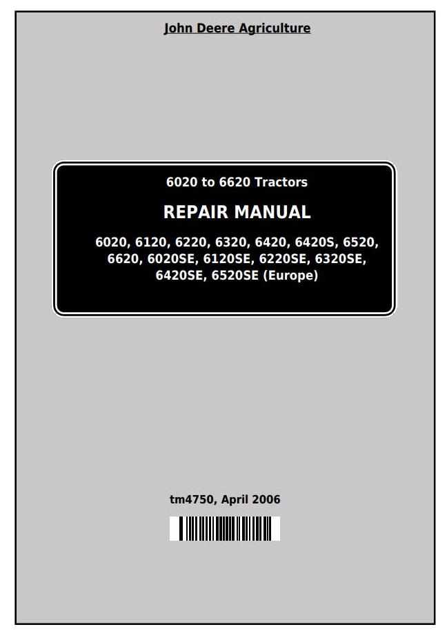 John Deere 6020 6120 6220 6320 6420 6520 6620 S SE European Tractor Repair Manual TM4750