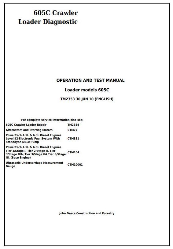John Deere 605C Crawler Loader Operation Test Manual TM2353