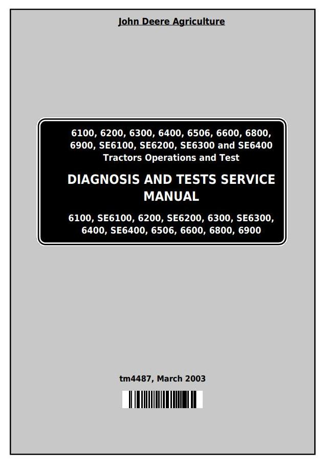John Deere 6100 6200 6300 6400 6506 6600 6800 6900 Tractor Diagnosis Test Service Manual TM4487