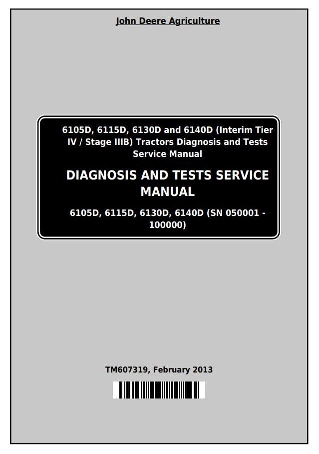 John Deere 6105D 6115D 6130D 6140D Tractor Diagnostic Test Service Manual TM607319