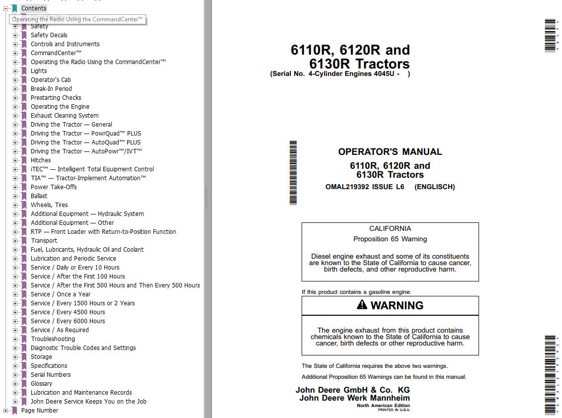 John Deere 6110R 6120R 6130R Operator's Manual OMAL219392 (708 Pages)