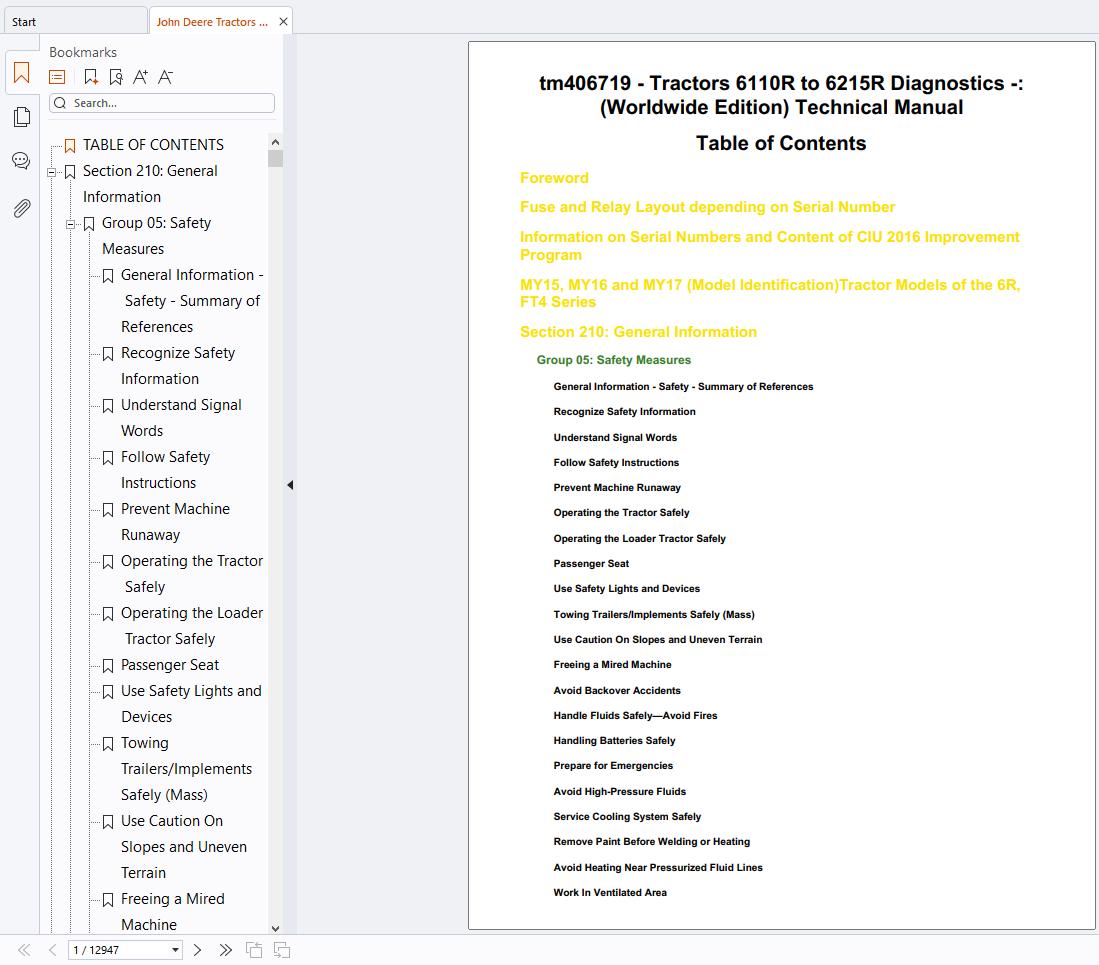 John Deere 6110R to 6215R Technical Diagnostic Manual TM406719