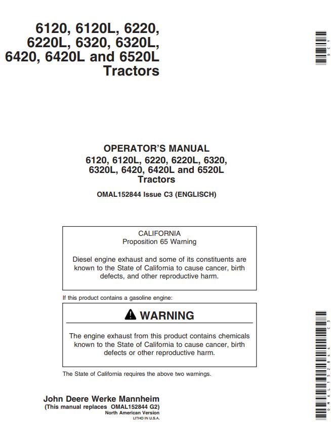 John Deere 6120 to 6520L Operator's Manual OMAL152844 (330 Pages)