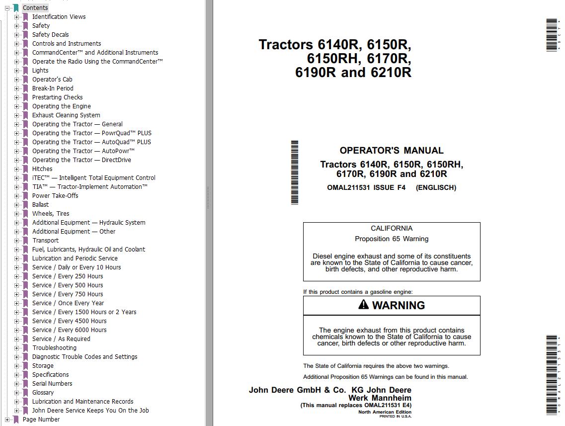 John Deere 6140R to 6210R Operators Manual OMAL211531