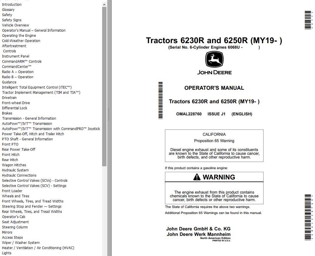 John Deere 6230R 6250R Operators Manual OMAL228760