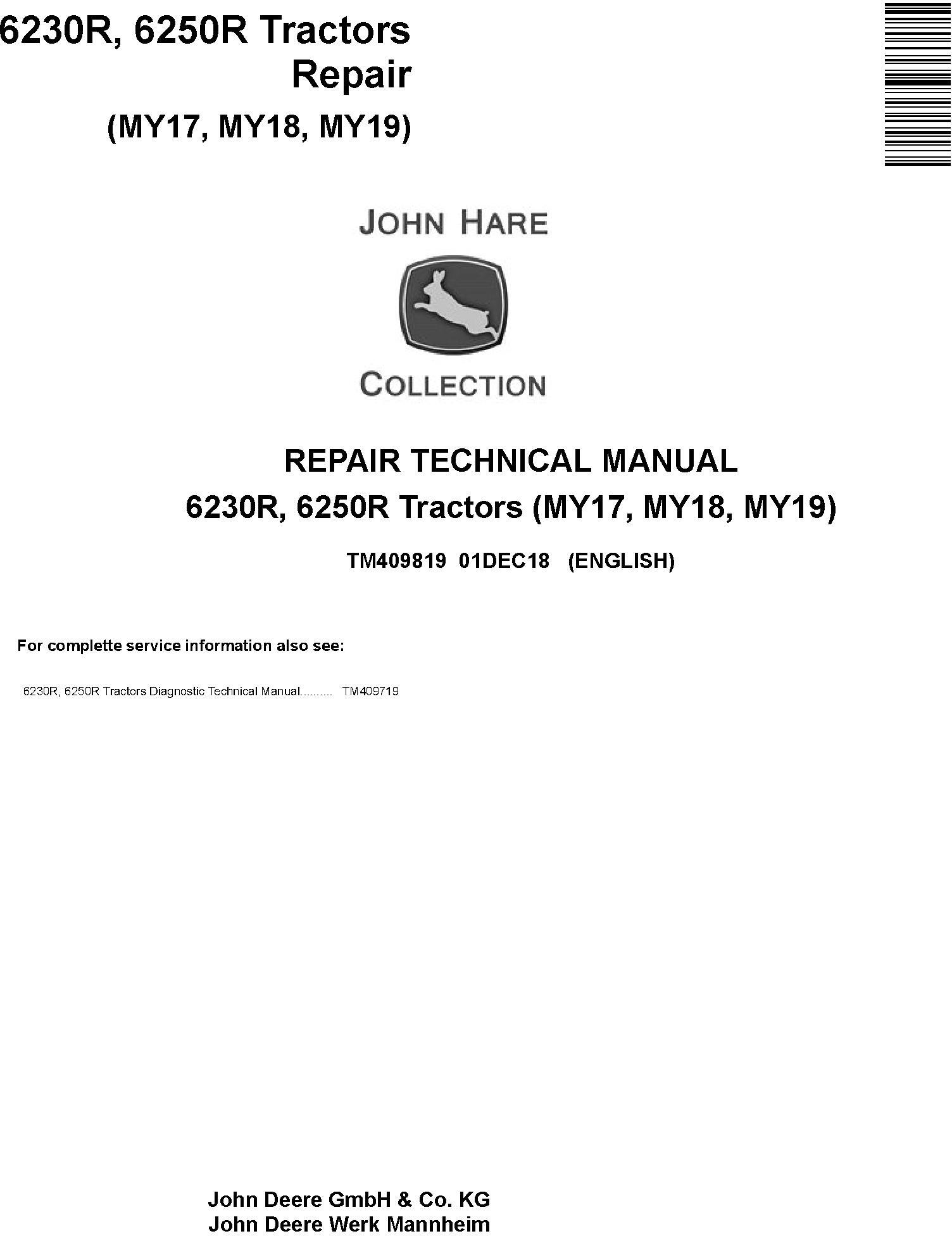 John Deere 6230R 6250R Tractor Repair Technical Manual TM409819