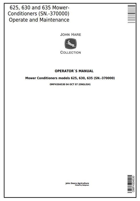 John Deere 625 630 635 Mower Conditioner Operator Maintenance Manual OMFH304530