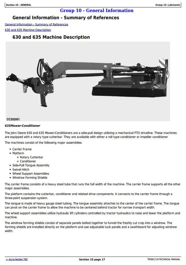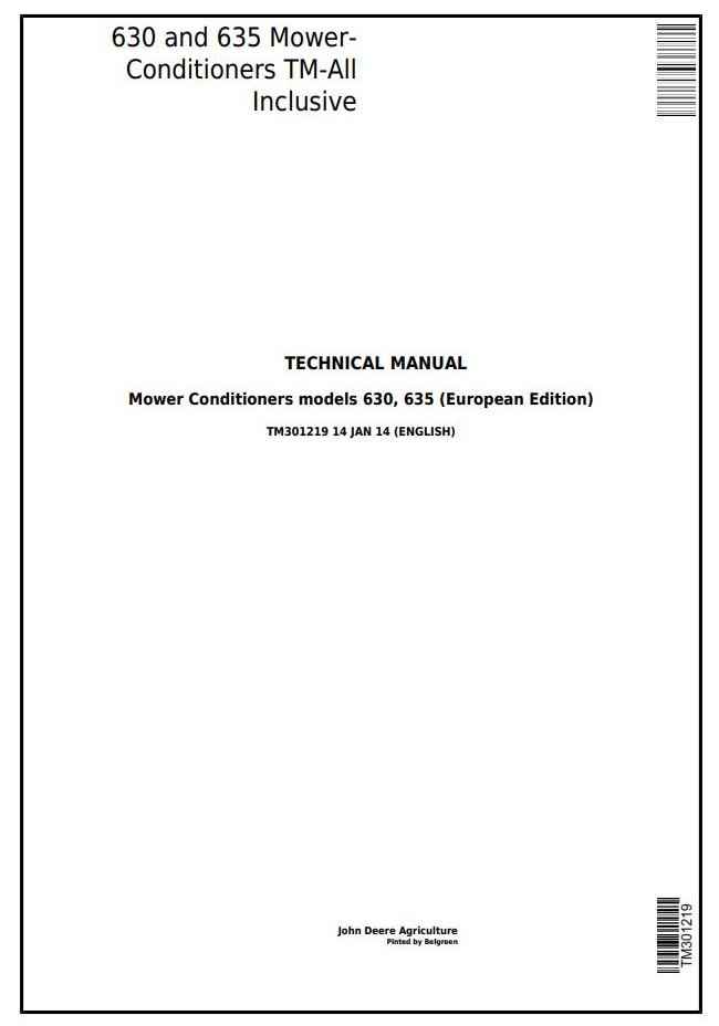 John Deere 630 635 Mower-Conditioner Technical Manual TM301219