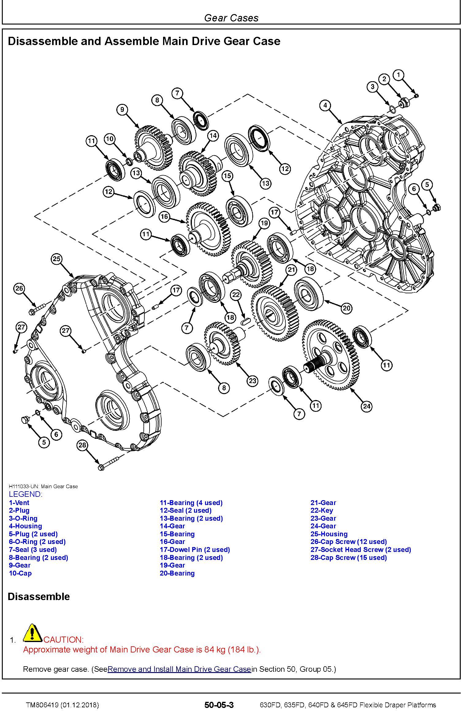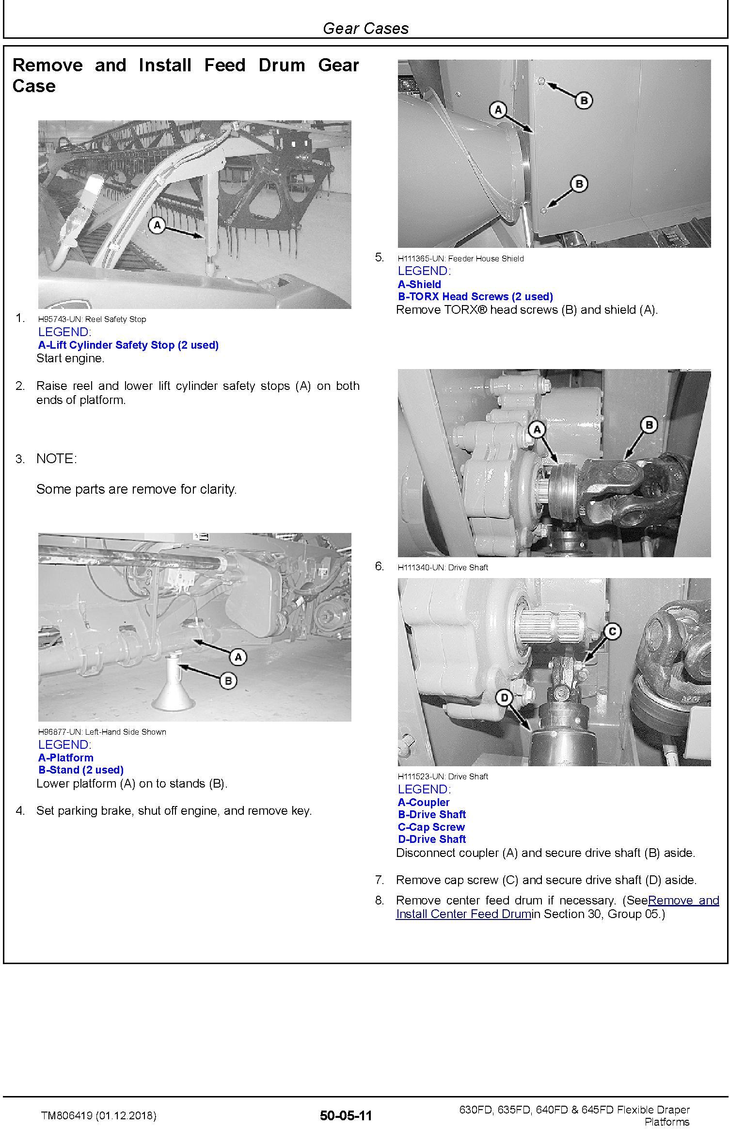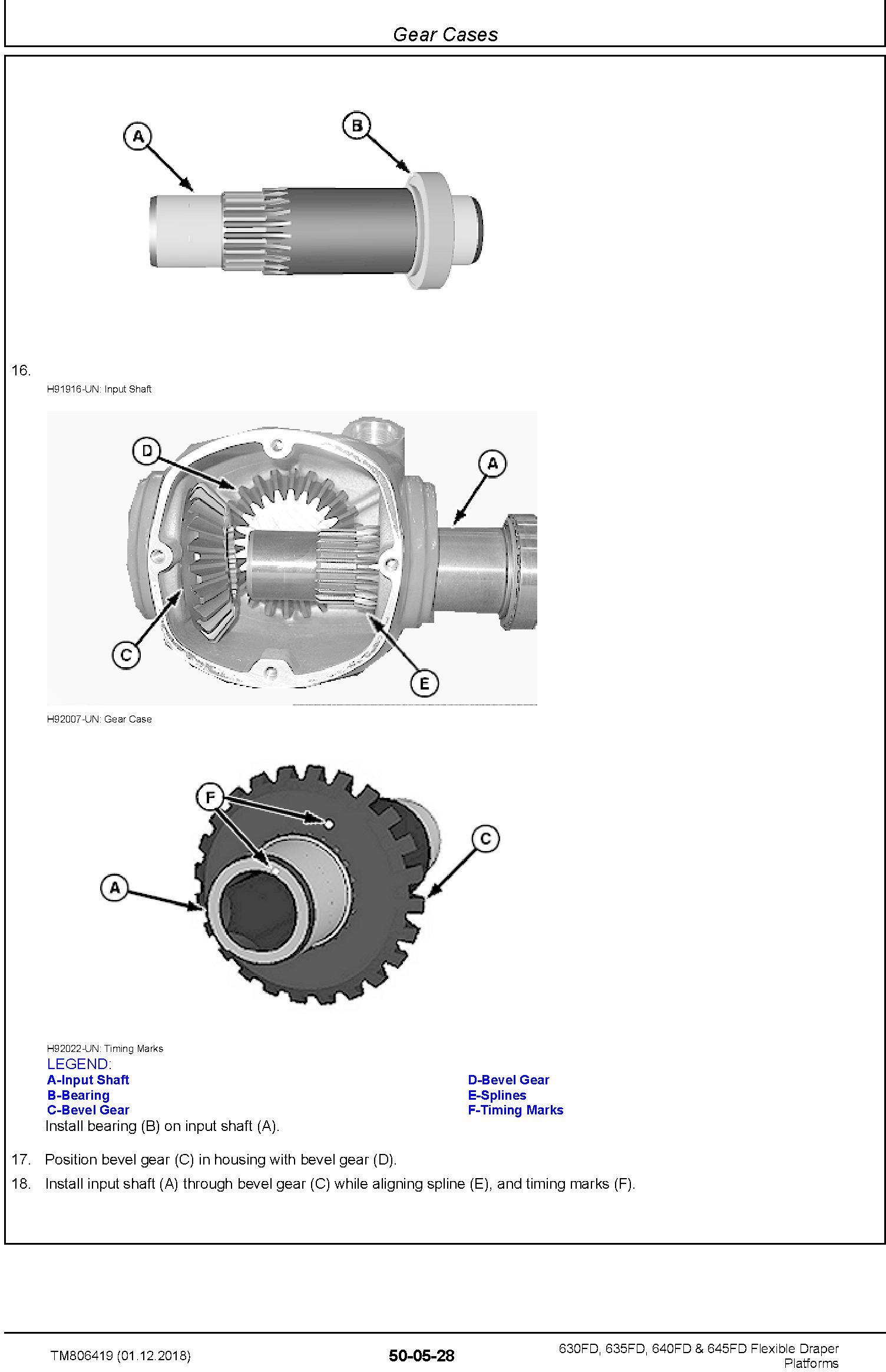John Deere 630FD to 645FD Flexible Draper Platform Repair Technical Manual TM806419