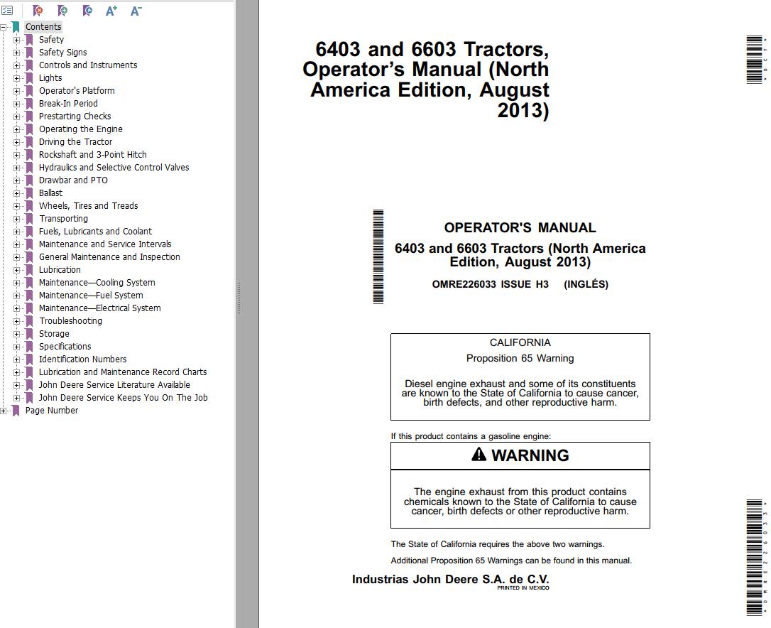 John Deere 6403 6603 Operator's Manual OMRE226033