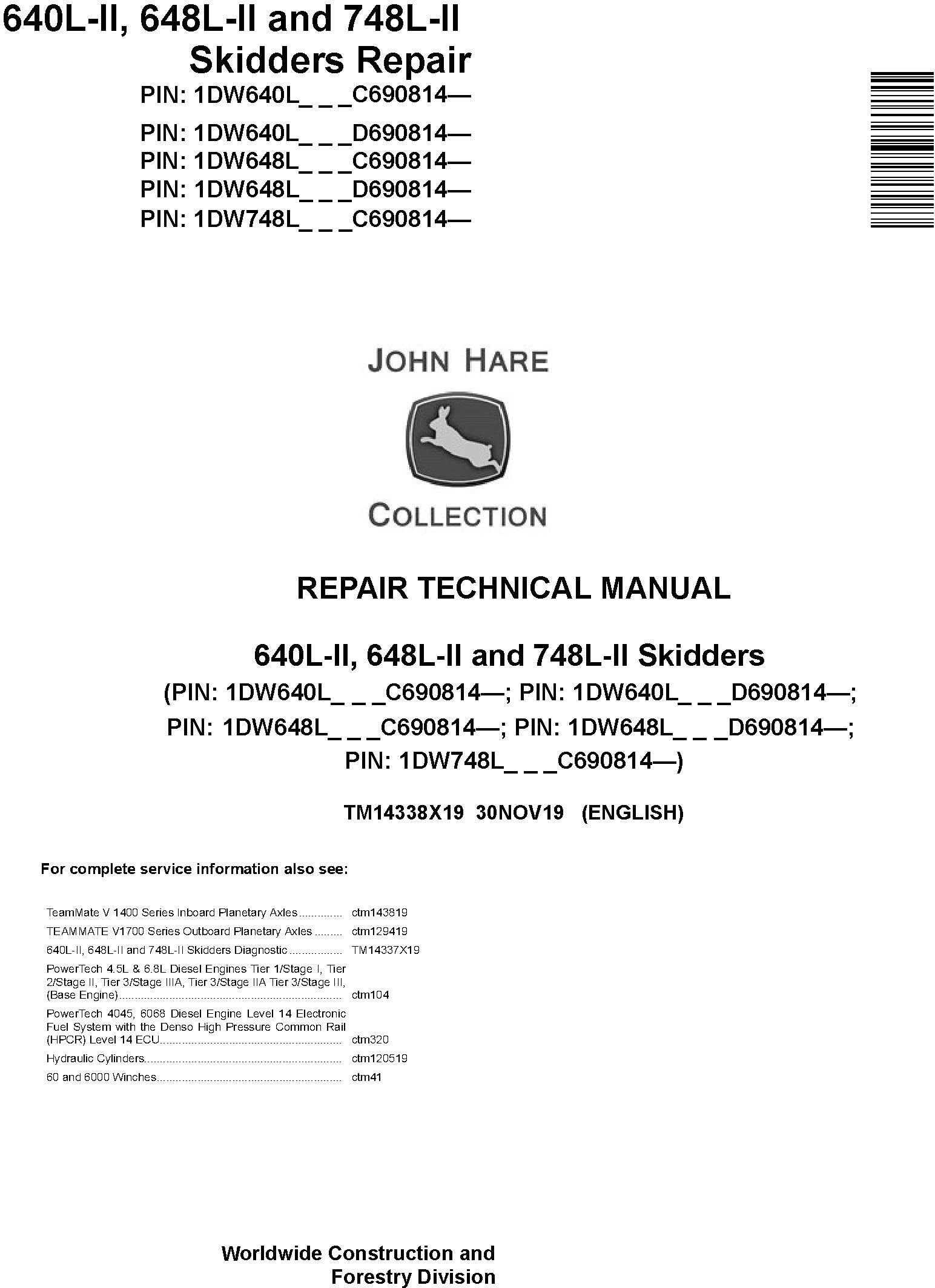 John Deere 640L-II 648L-II 748L-II Skidder Repair Technical Manual TM14338X19
