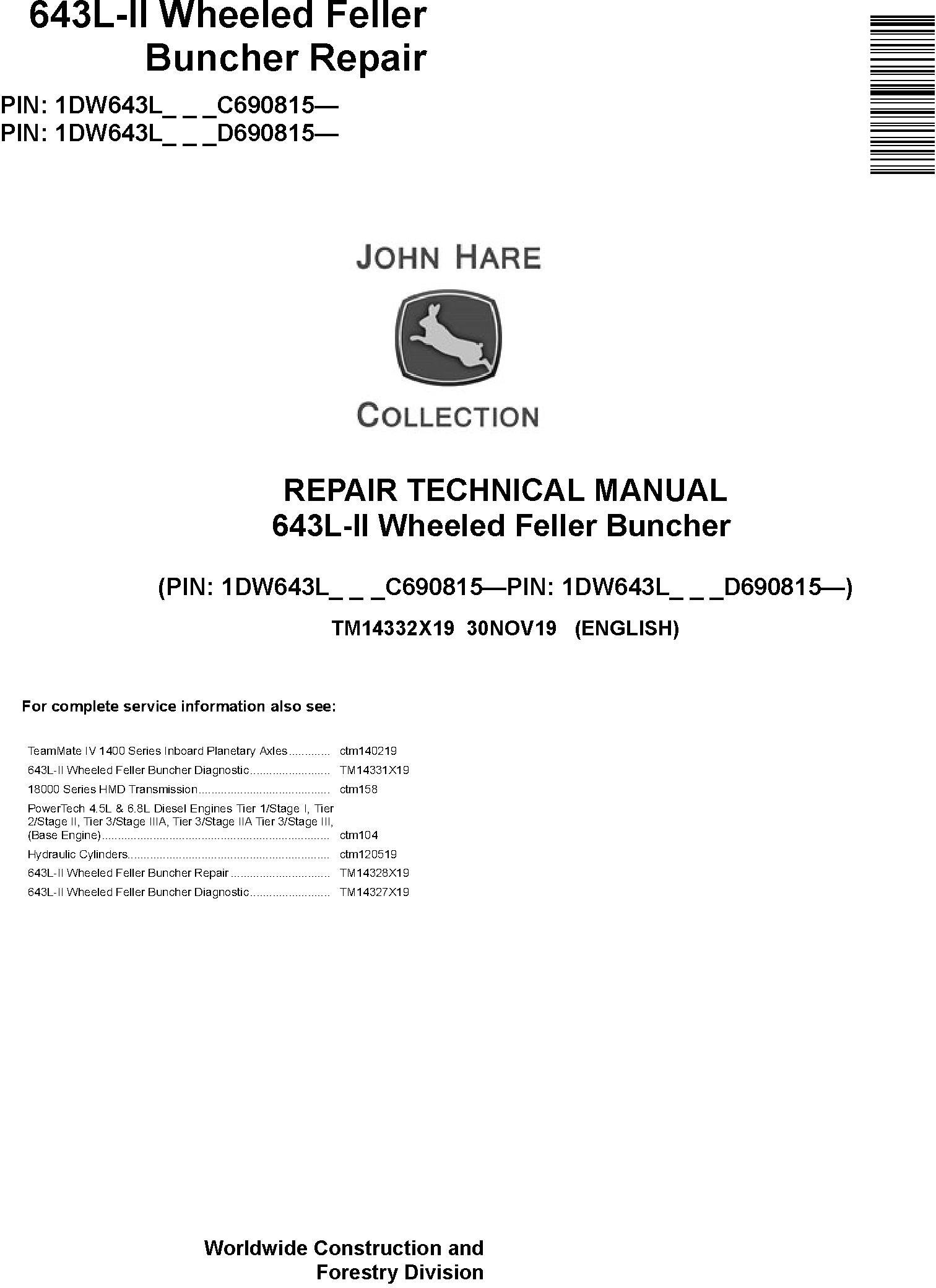John Deere 643L-II Wheeled Feller Buncher Repair Technical Manual TM14332X19