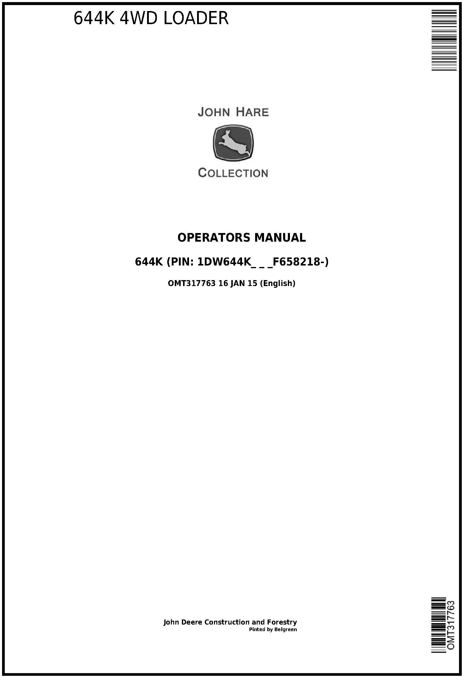 John Deere 644K 4WD Loader Operator Manual OMT317763