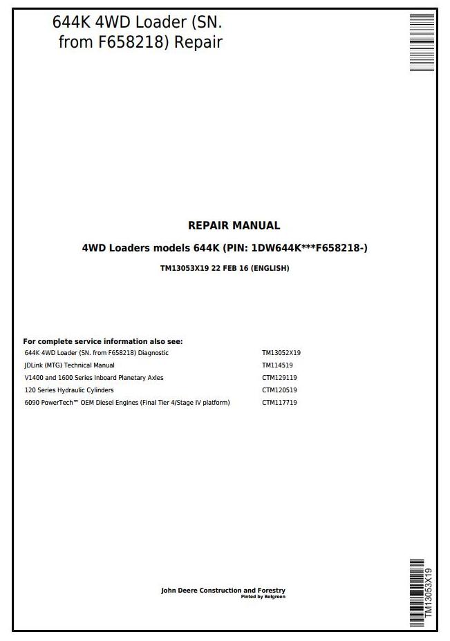 John Deere 644K 4WD Loader Repair Manual TM13053X19