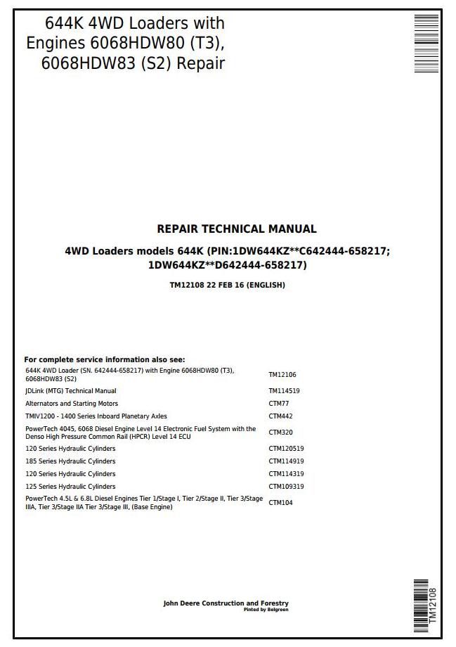 Machine Model: 644K (PIN:1DW644KZ**C642444-658217; 1DW644KZ**D642444-658217), (SN.642444-658217) w.Engine 6068HDW80 (T3), 6068HDW83 (S2)