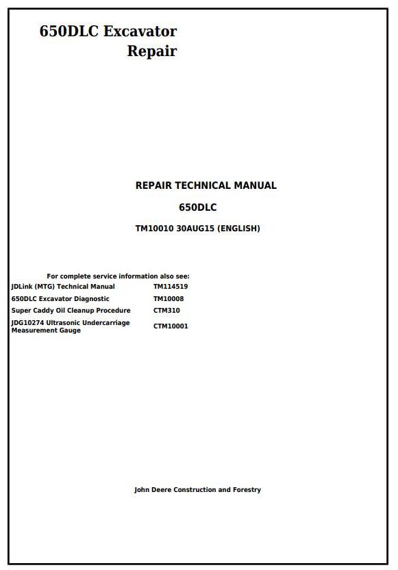 John Deere 650DLC Excavator Repair Technical Manual TM10010