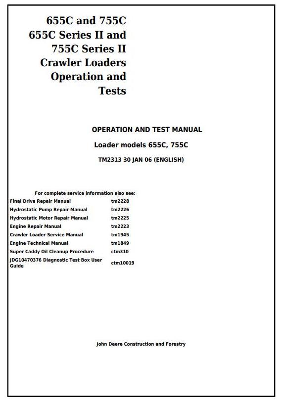 John Deere 655C 755C Series II Crawler Loaders Operation Test Manual TM2313