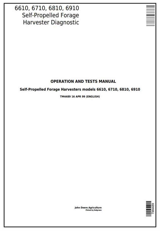 John Deere 6610 6710 6810 6910 Self-Propelled Forage Harvester Diagnostic Operation Test Manual TM4489