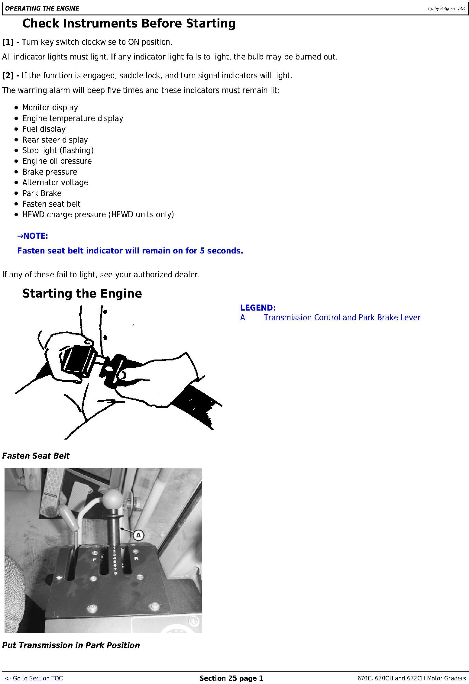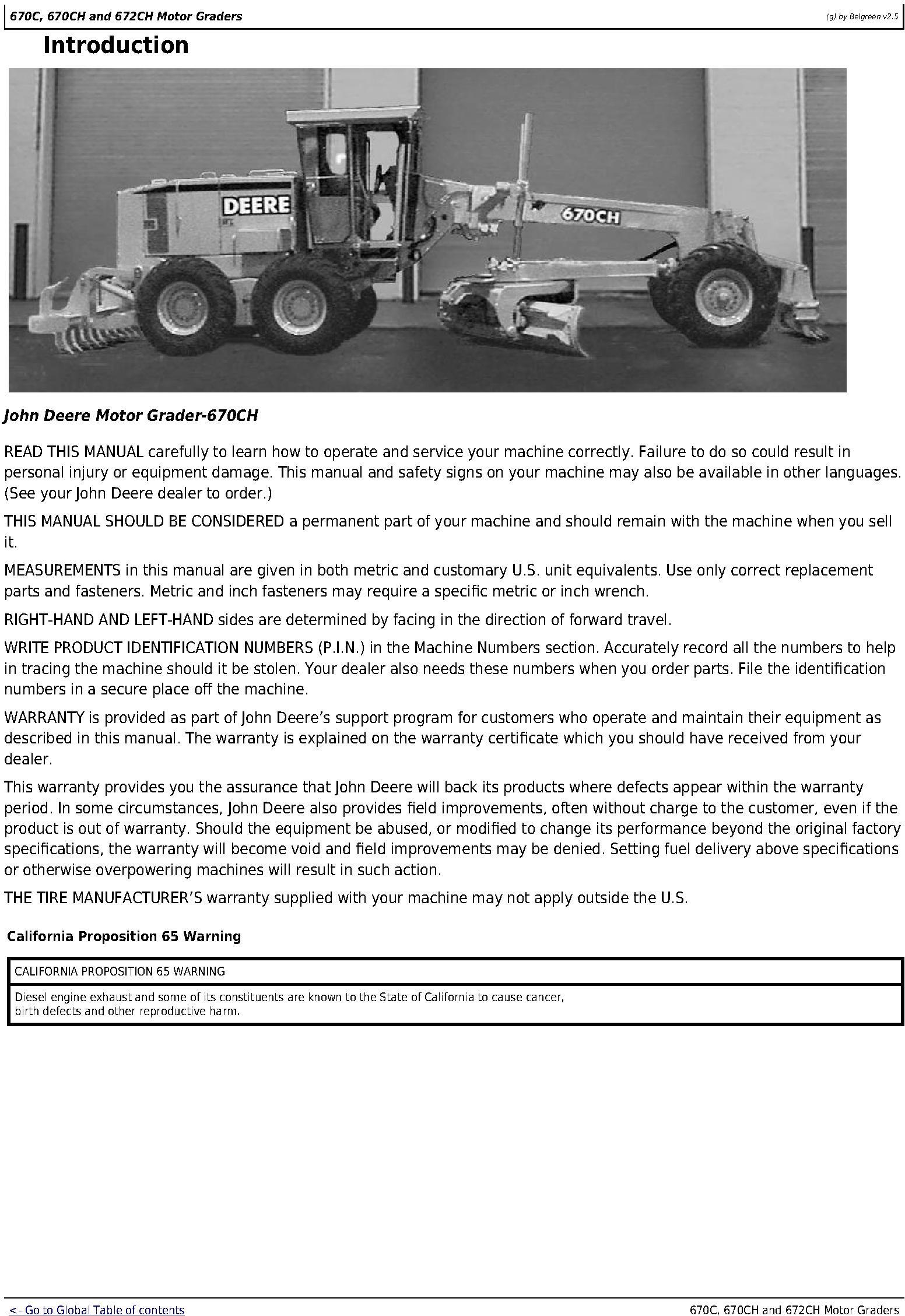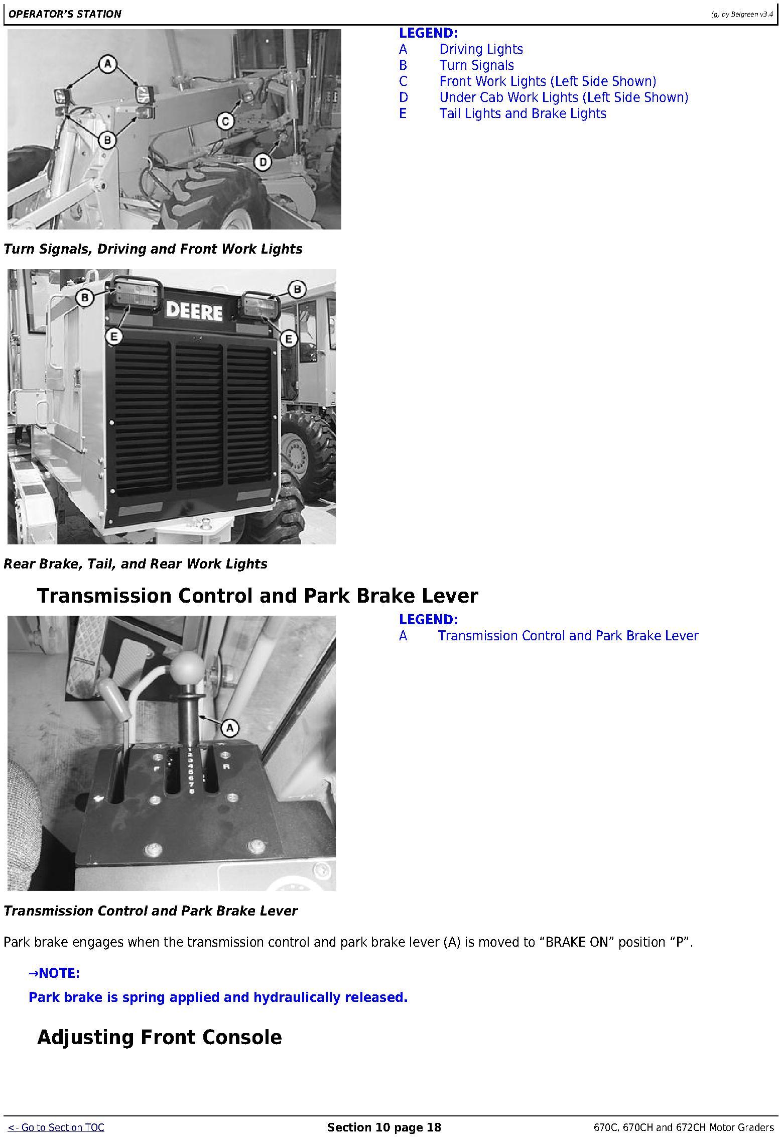 John Deere 670C 670CH 672CH Motor Grader Operator Manual OMT184948