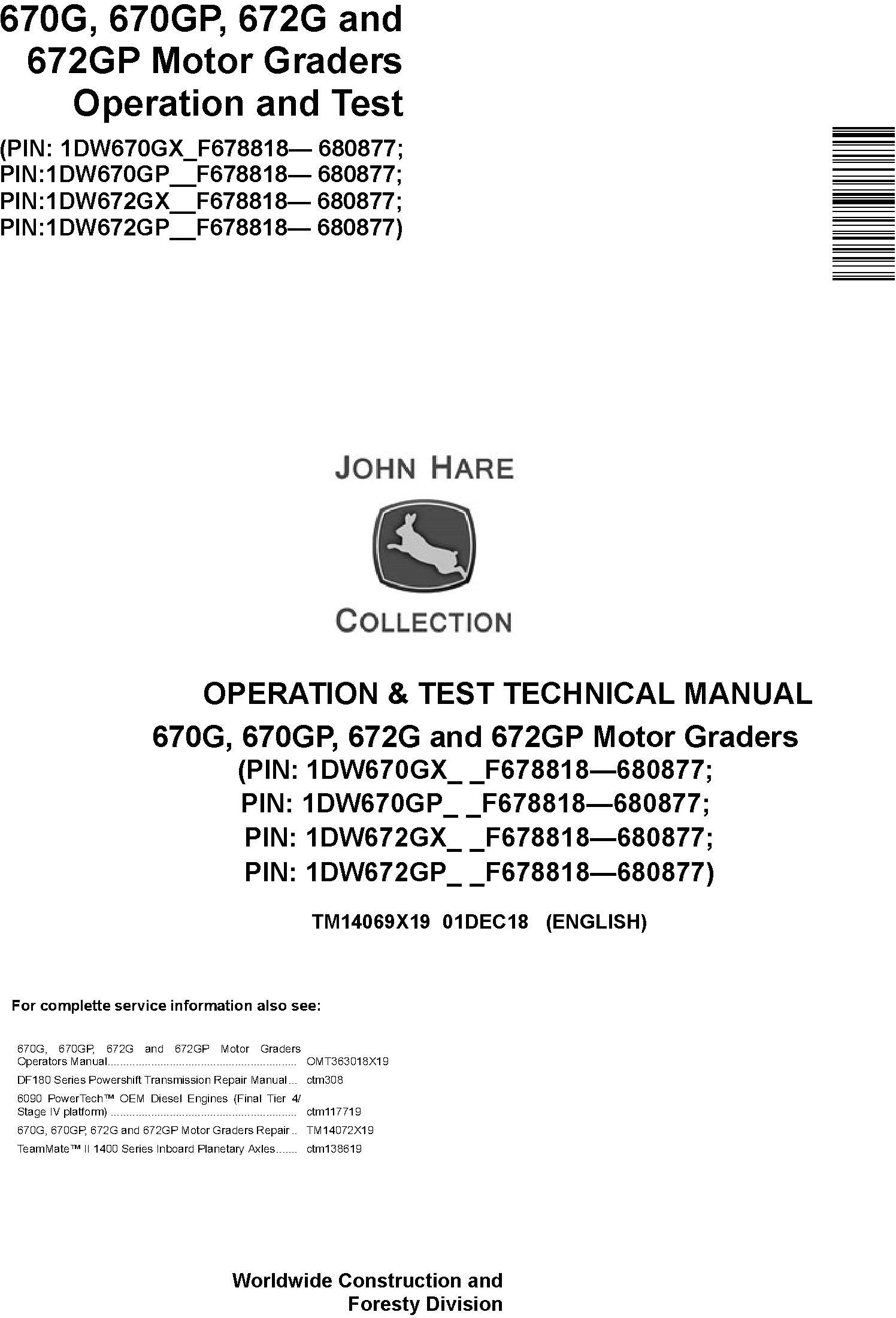 John Deere 670G 670GP 672G 672GP Motor Grader Operation Test Technical Manual TM14069X19