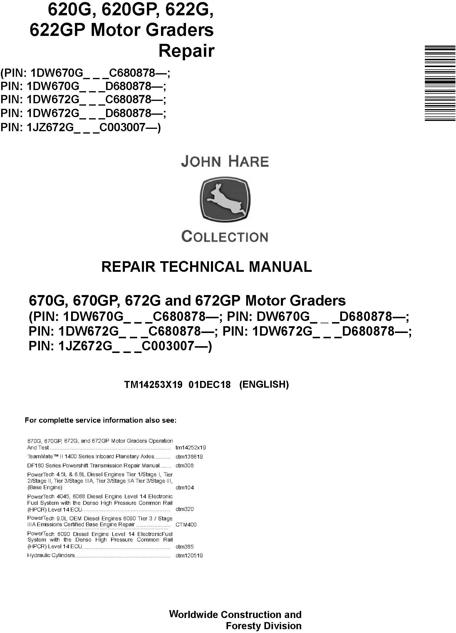 John Deere 670G 670GP 672G 672GP Motor Grader Repair Technical Manual TM14253X19