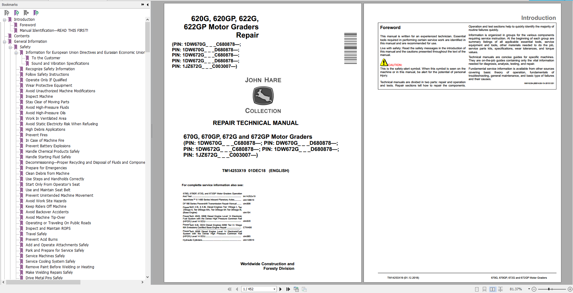 John Deere 670G 670GP 672G 672GP Repair Technical Manual TM14253X19