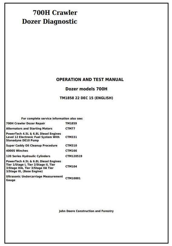John Deere 700H Crawler Dozer Diagnostic Operation Test Manual TM1858