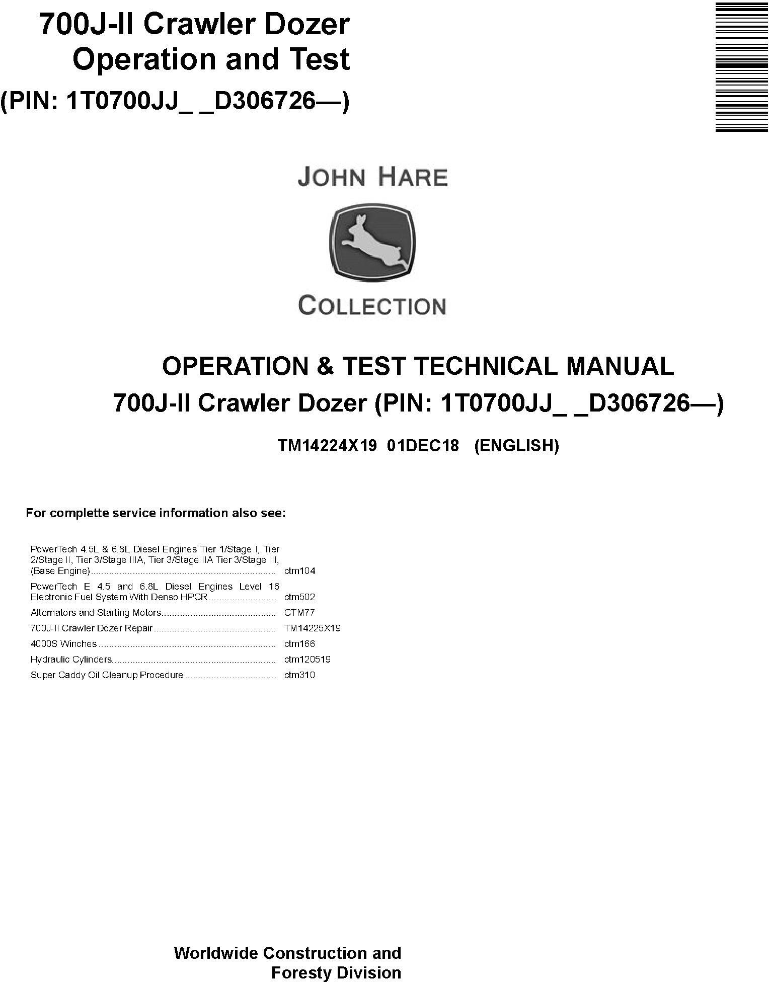 John Deere 700J-II Crawler Dozer Operation Test Technical Manual TM14224X19