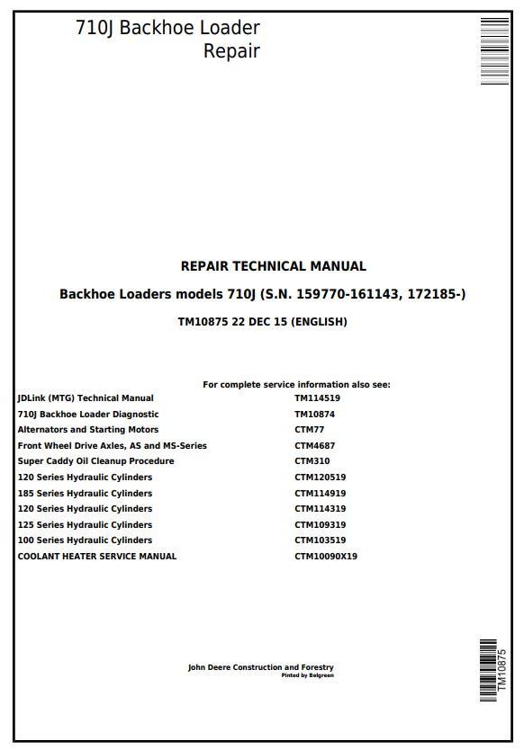 John Deere 710J Backhoe Loader Repair Technical Manual TM10875