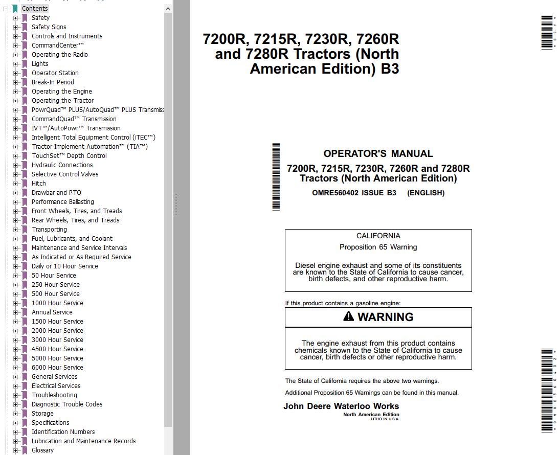 John Deere 7200R 7215R 7230R 7260R 7280R Operator's Manual OMRE560402