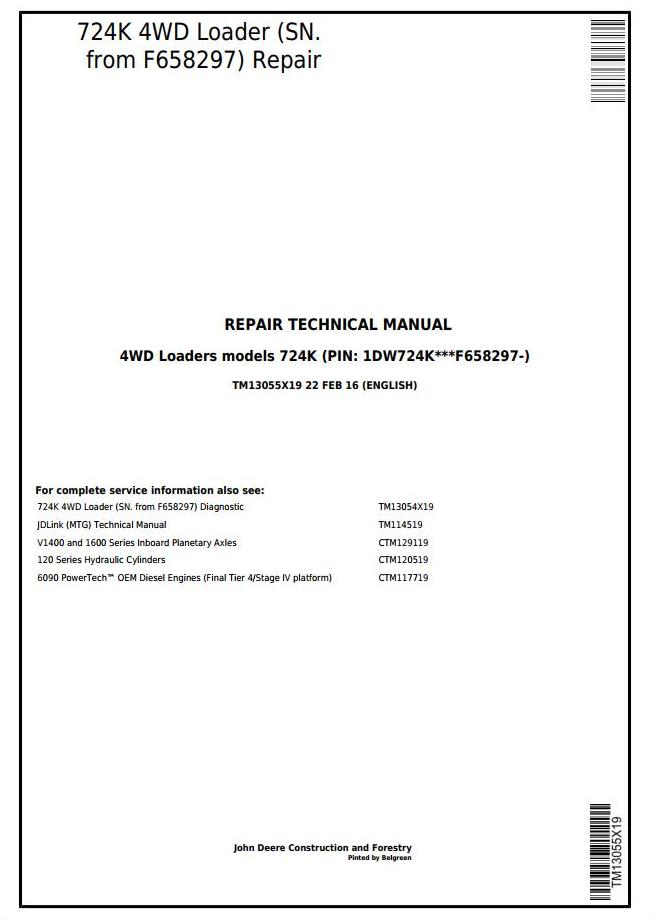 John Deere 724K 4WD Loader Repair Technical Manual TM13055X19