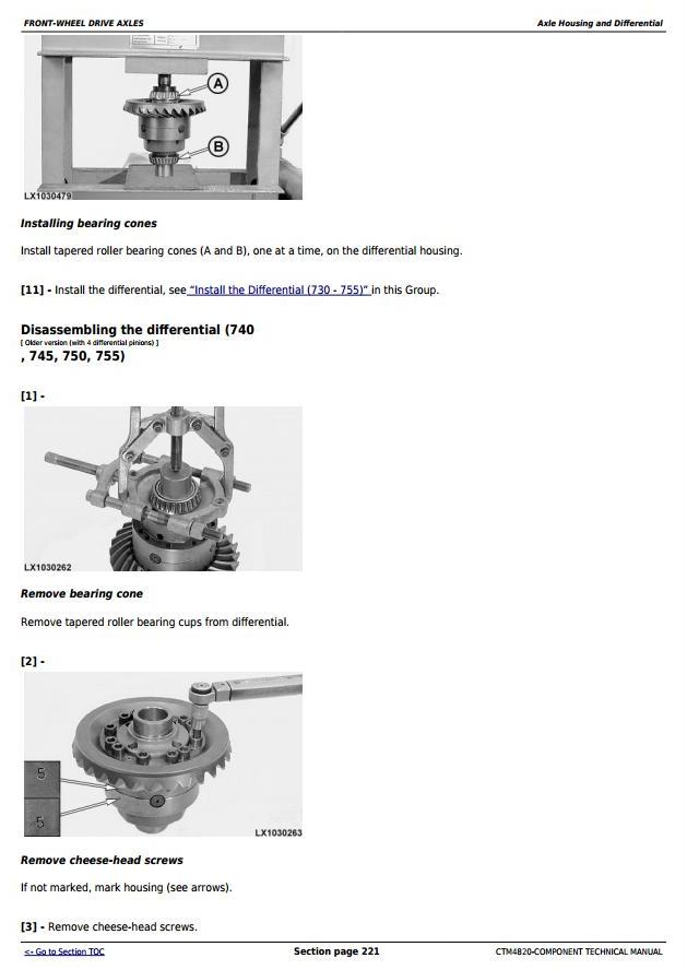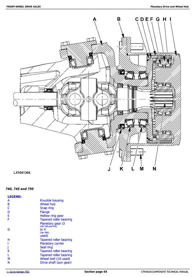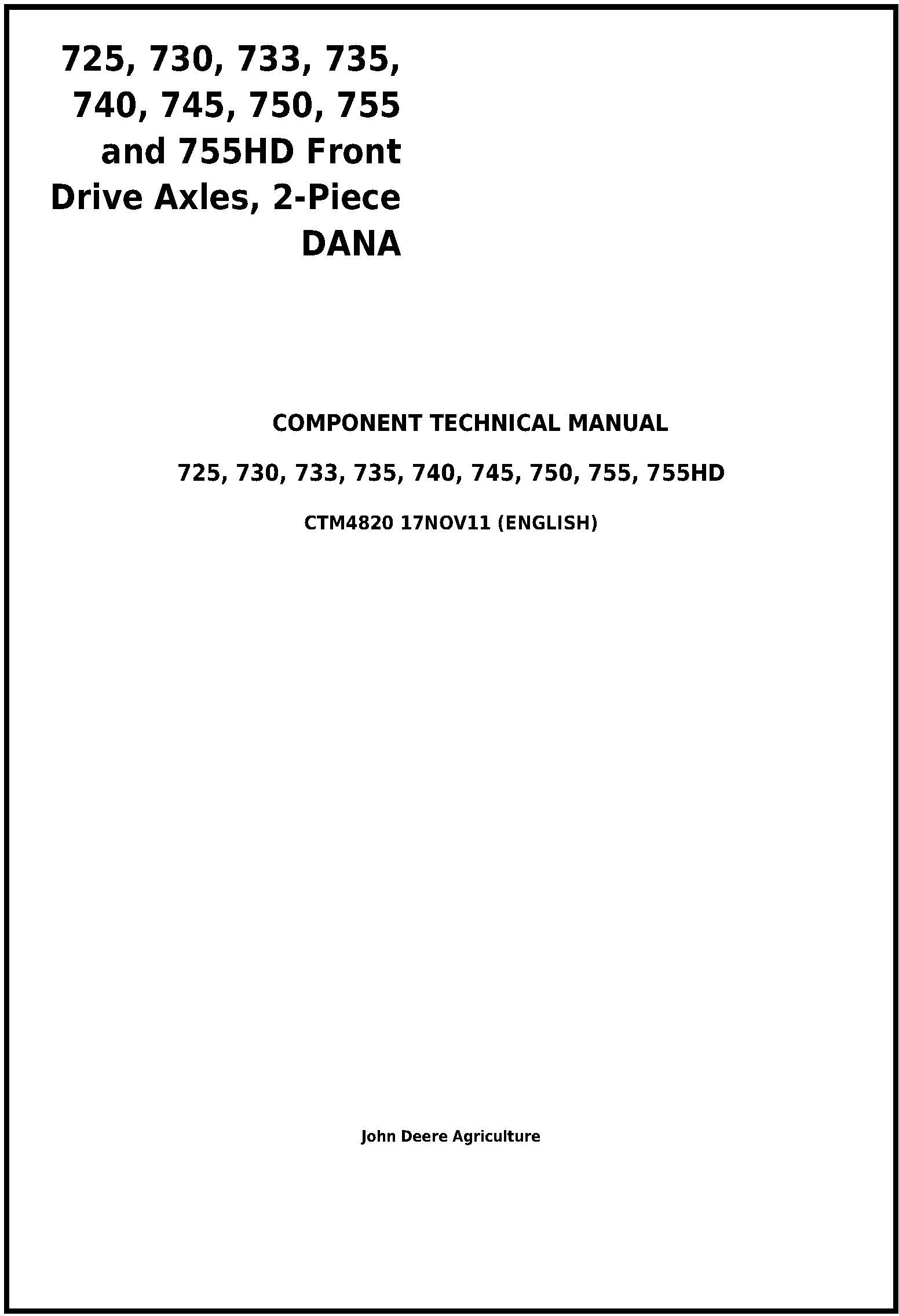 John Deere 725 730 733 735 740 745 750 755 755HD Front Drive Axles Component Technical Manual CTM4820