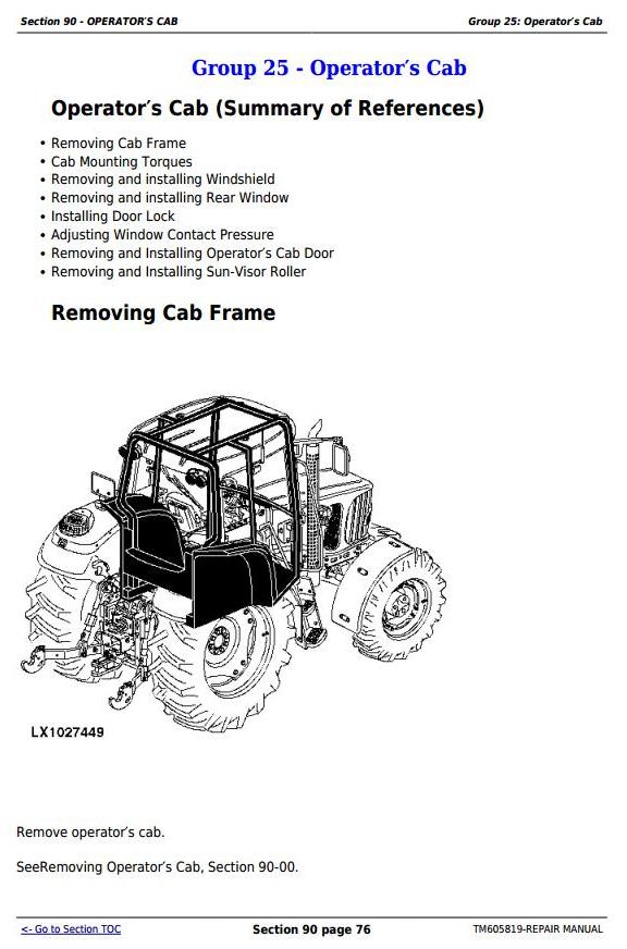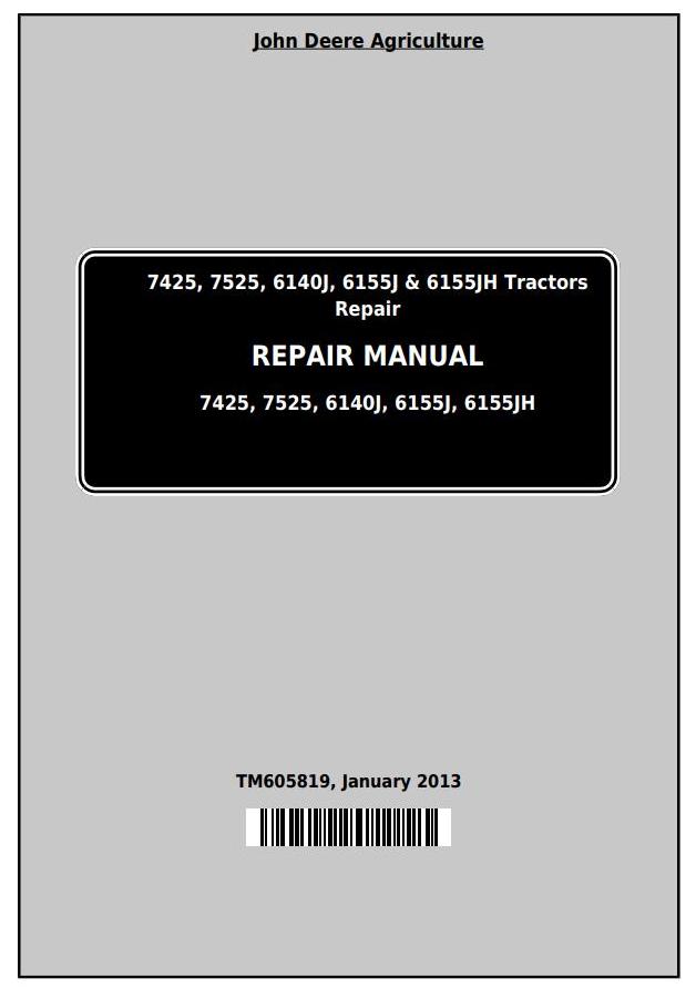 John Deere 7425 7525 6140J 6155J 6155JH Tractor Repair Manual TM605819