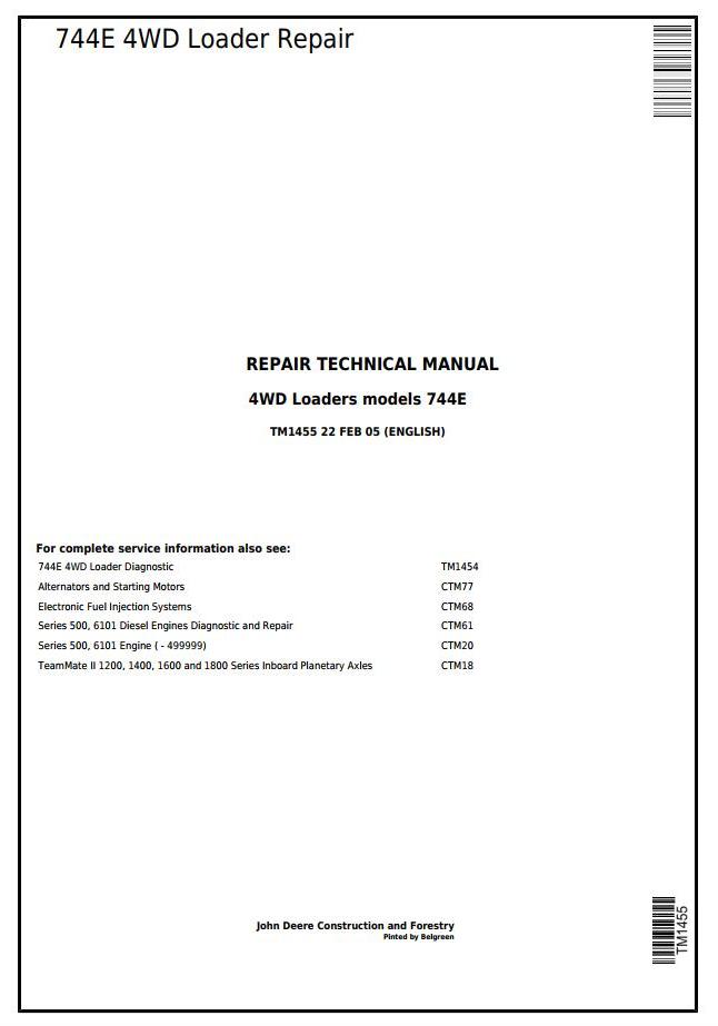John Deere 744E 4WD Loader Repair Tehnical Manual TM1455