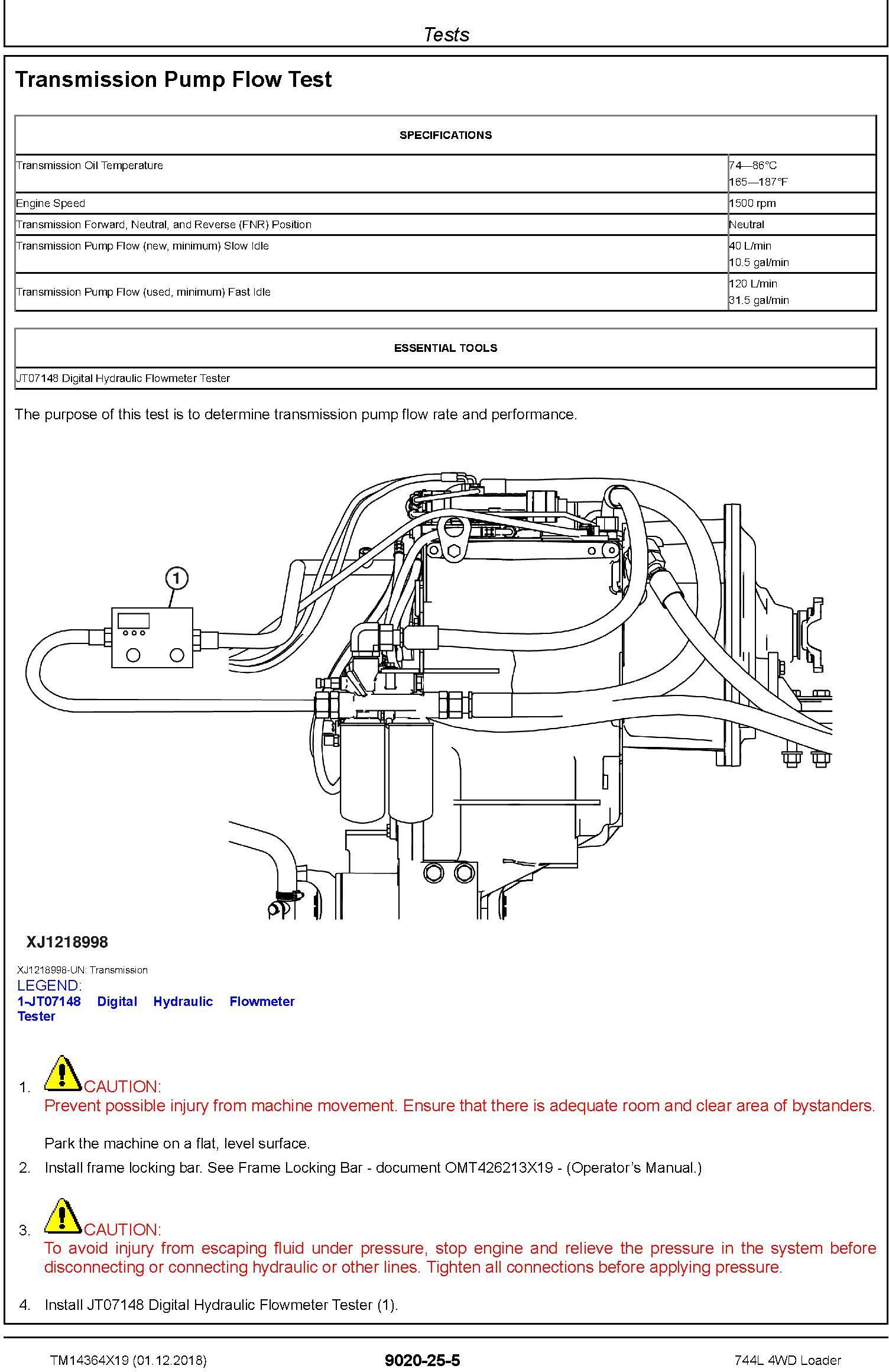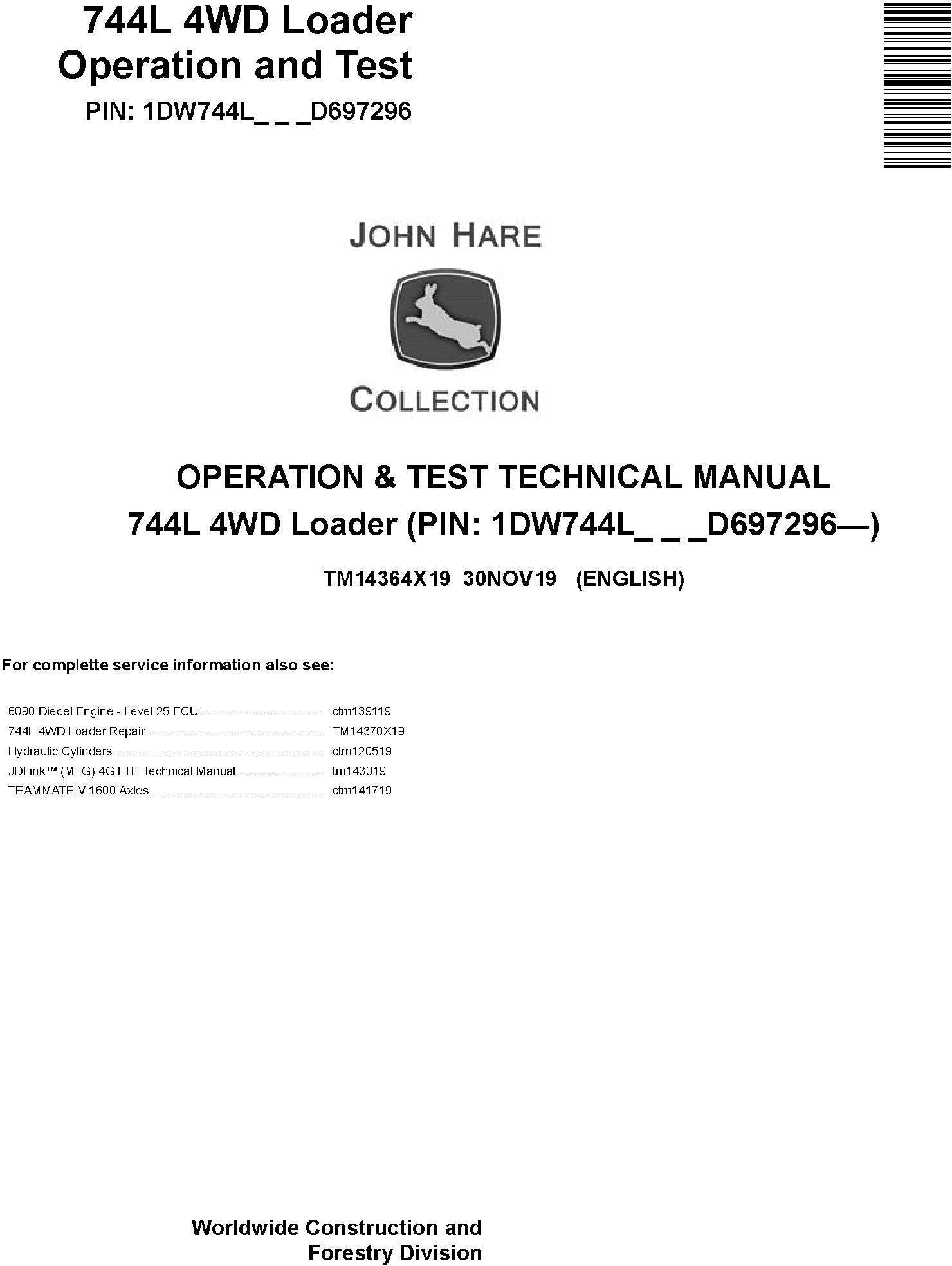 John Deere 744L 4WD Loader Operation Test Technical Manual TM14364X19