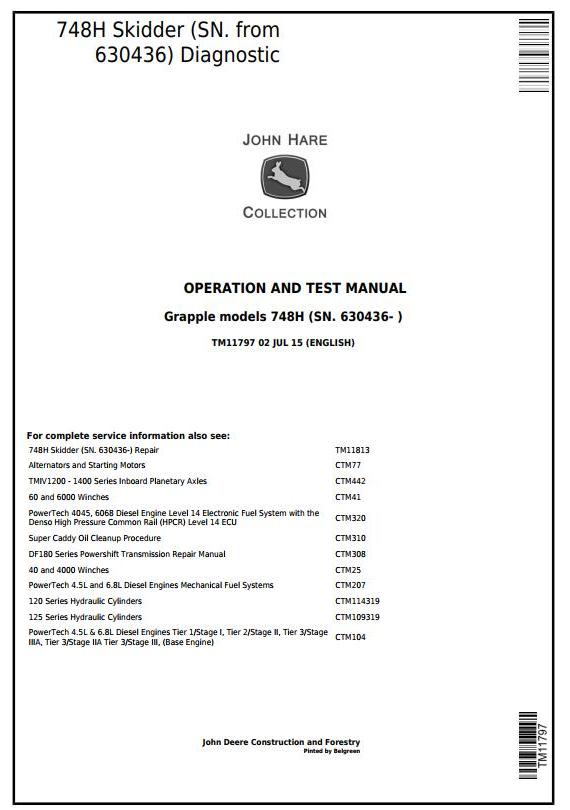 John Deere 748H Grapple Skidder Diagnostic Operation Test Manual TM11797