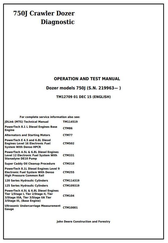 John Deere 750J Crawler Dozer Diagnostic Operation Test Manual TM12709