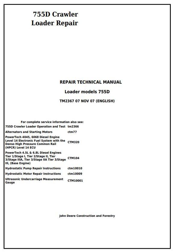 John Deere 755D Crawler Loader Repair Technical Manual TM2367